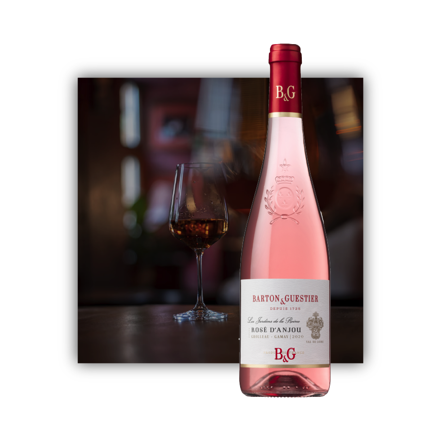 Originario de Francia, en el corazón del Valle del Loira, entre Tours y Nantes, este vino rosado de la prestigiosa bodega Barton & Guestier encarna la elegancia y frescura características de la región. Elaborado cuidadosamente a partir de las cepas Grolleau y Gamay, refleja el espíritu del Loira: vinos alegres, aromáticos y fáciles de disfrutar. A la vista, deslumbra con su color rosa brillante, símbolo de juventud y vitalidad. En nariz, despliega un aroma seductor con predominio de frambuesa, cereza y grosella, que anticipan un perfil afrutado y fresco. En boca, es suave, goloso y equilibrado, con una delicada persistencia que deja recuerdos de bayas rojas.